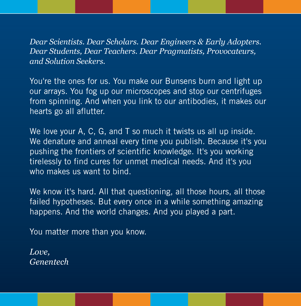 At Genentech we're in love with science. And we believe there's a scientist in all of us.